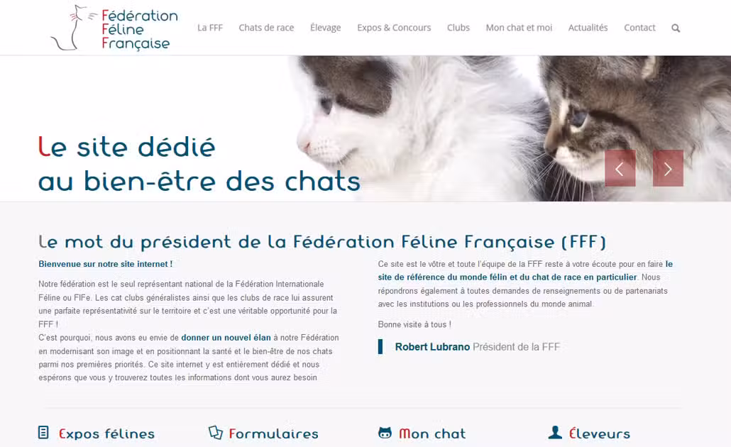 C’est grâce à Caroline Barnasson de l’agence Pieds sur terre et de Stéphanie Deleage de Kalistène que j’ai été missionné pour la refonte du site de la Fédération Féline Française. Un projet imposant car il regroupait beaucoup d’antennes locales comme des éleveurs de races : ce site se veut le le site de référence du monde félin et du chat de race en particulier.