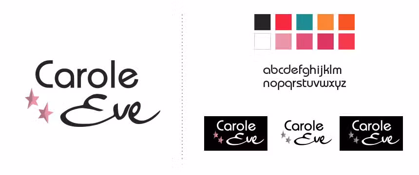 J’ai donc proposé une forme qui allie une proposition calligraphie et l’emploi d’une fonte : c’est la variation de logo qui intégrait au mieux le coté composite et complémentaire du projet et de la personnalité de Carole-Eve.